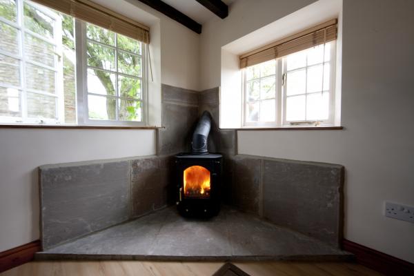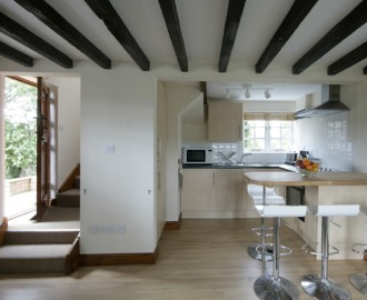 Entrance leading to open plan kitchen and living area. Character beamed ceiling, wooden floor, and windows to all sides to enjoy and take advantage of the fantastic views. Two recliner chairs are located in the living area for your comfort and relaxation. There is a wood burning fire, which is cosy and warm in the winter months. Wall mounted T.V with Freeview.